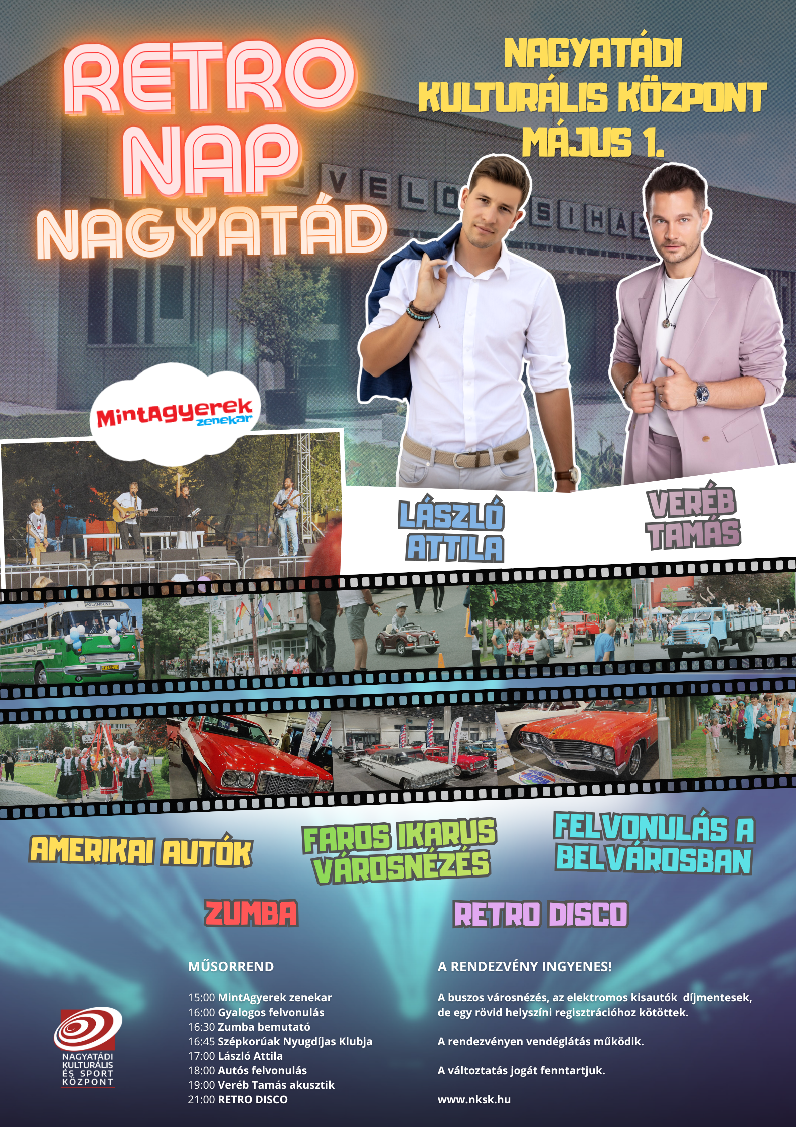2026. május 1-jén ismét Retro napra várják az érdeklődőket a Nagyatádi Kulturális Központba. A programok között minden korosztály találhat kedvére valót: lesz felvonulás, zene, gyerekprogramok és látványos járművek is.
